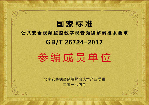 国家标准公共清静视频监控数字视音频编解码手艺要求参编成员单位